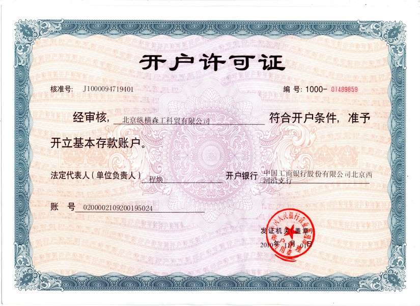 您現(xiàn)在的位置:首頁 ? 弘旭簡介 ? 資質(zhì)榮譽 ? 開戶許可證