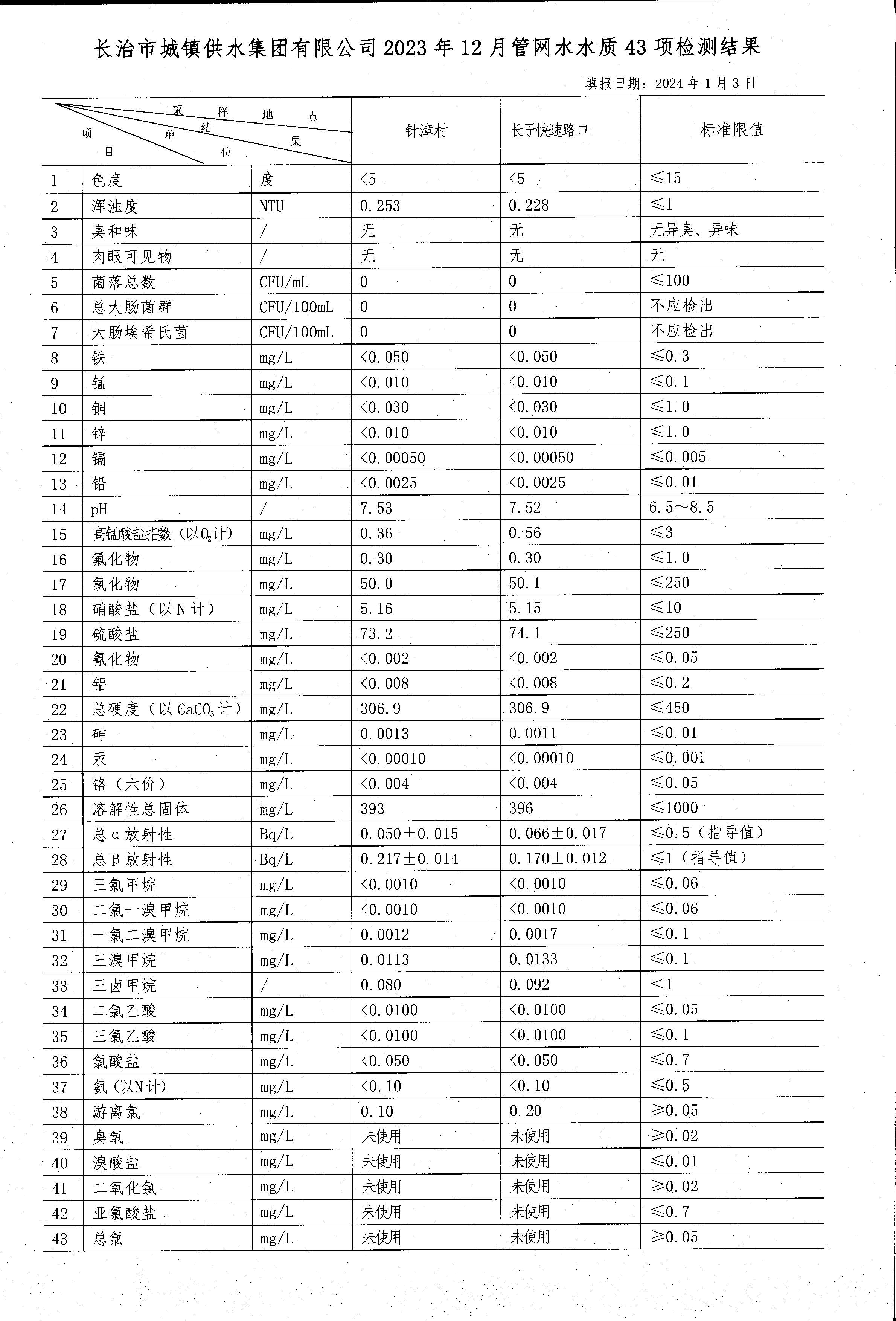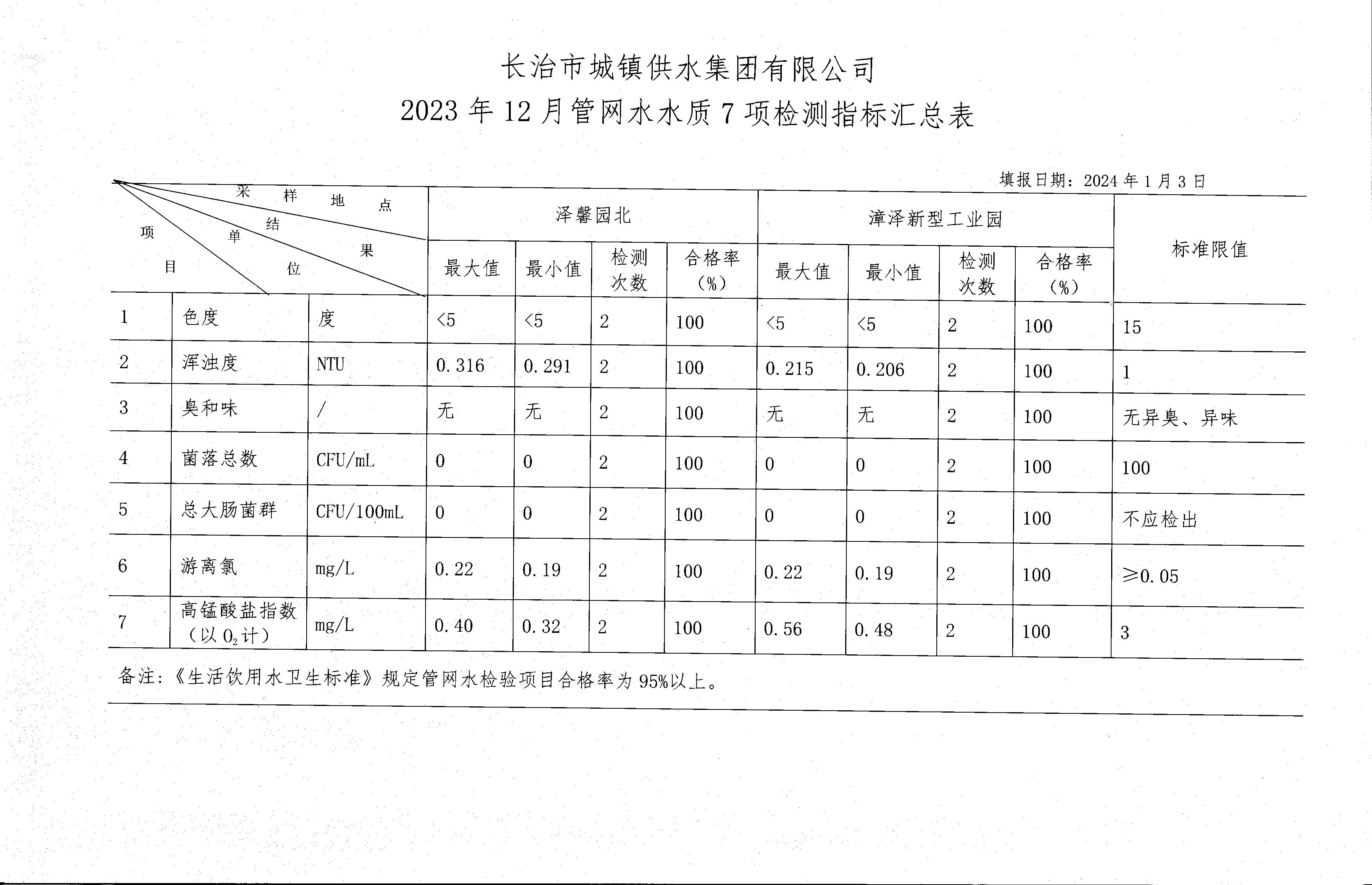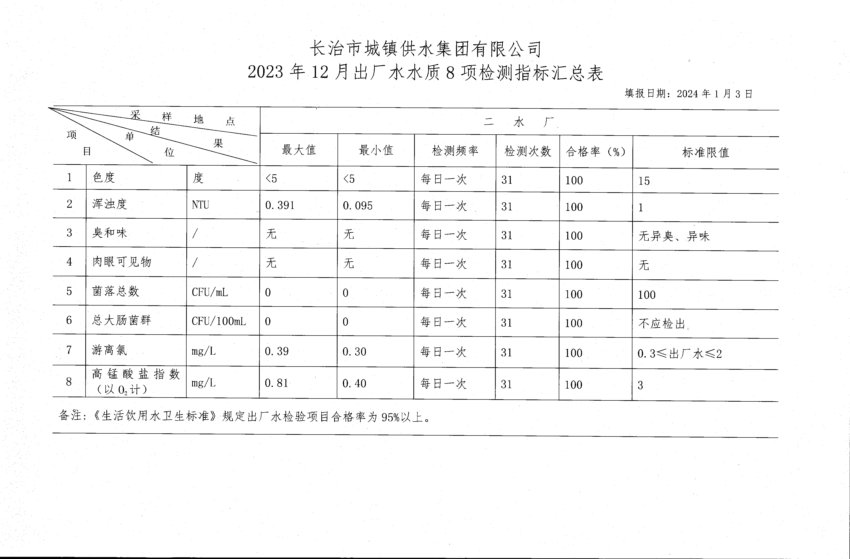 十二月水質檢測報告