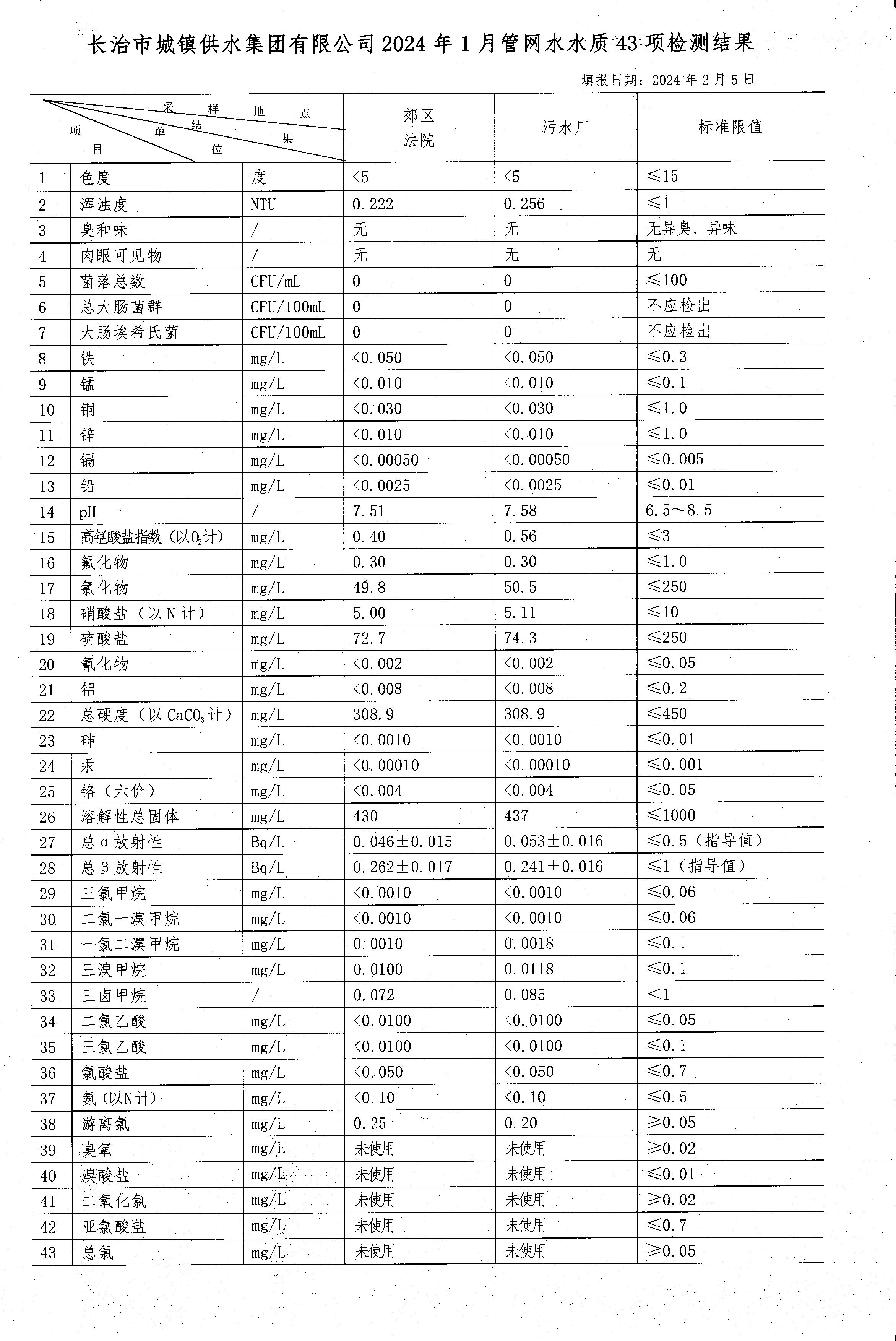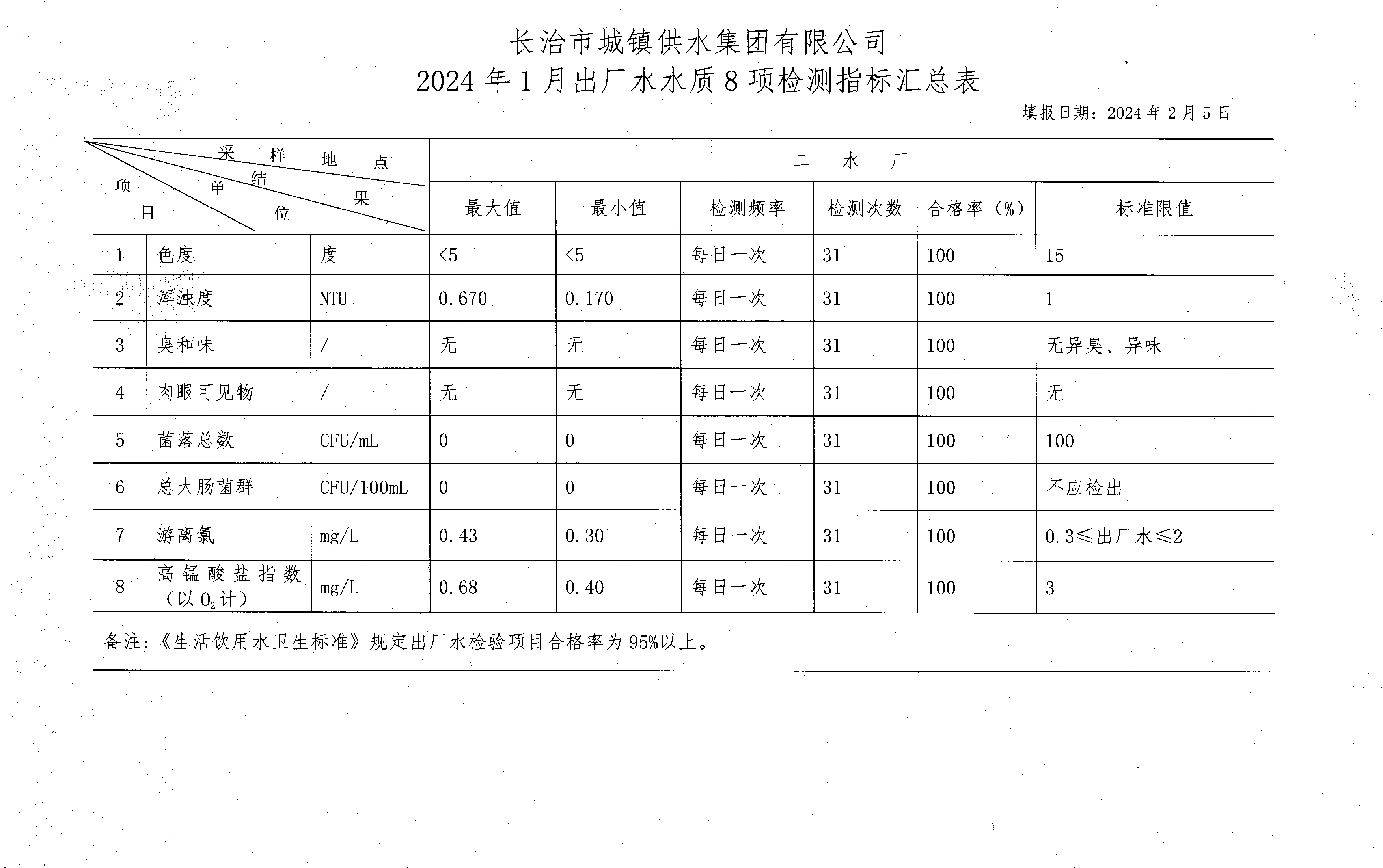 一月水質檢測報告
