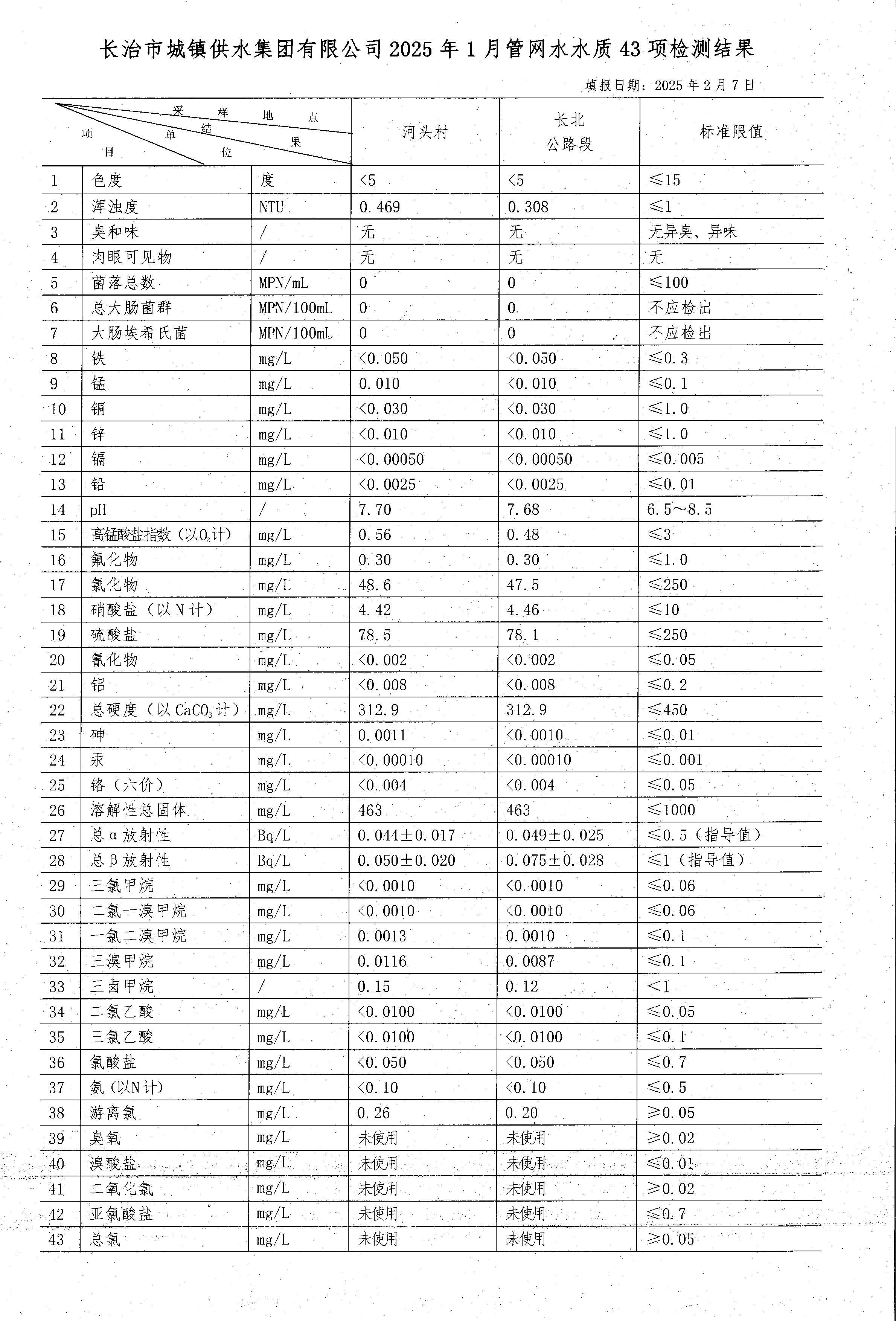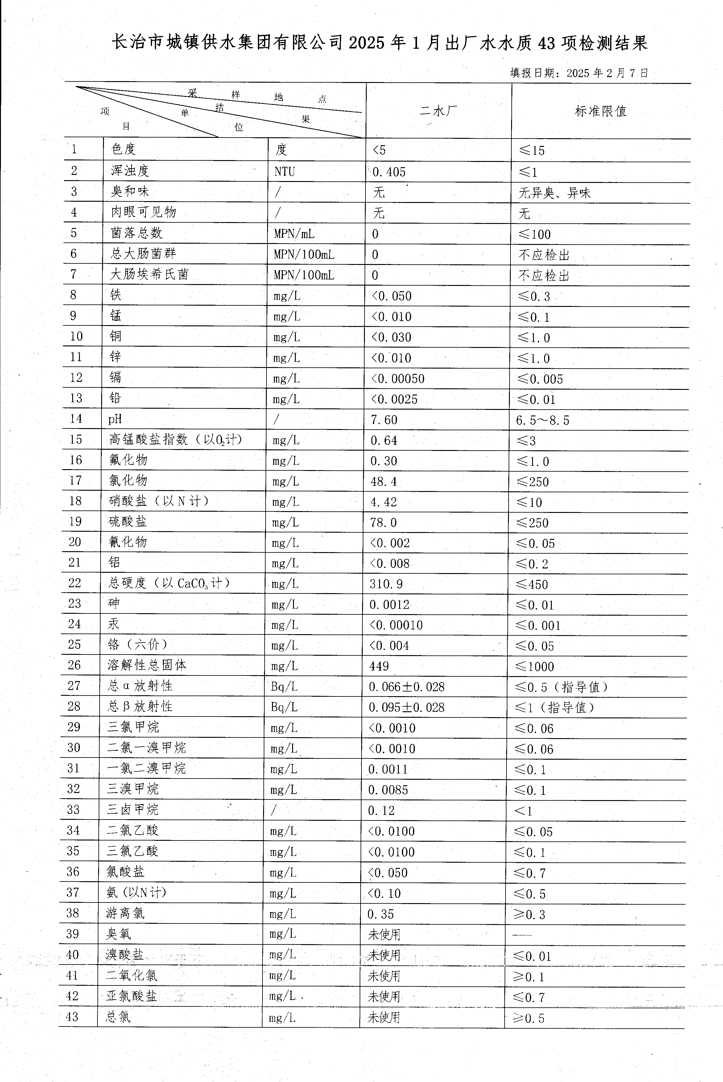一月水質(zhì)檢測(cè)報(bào)告