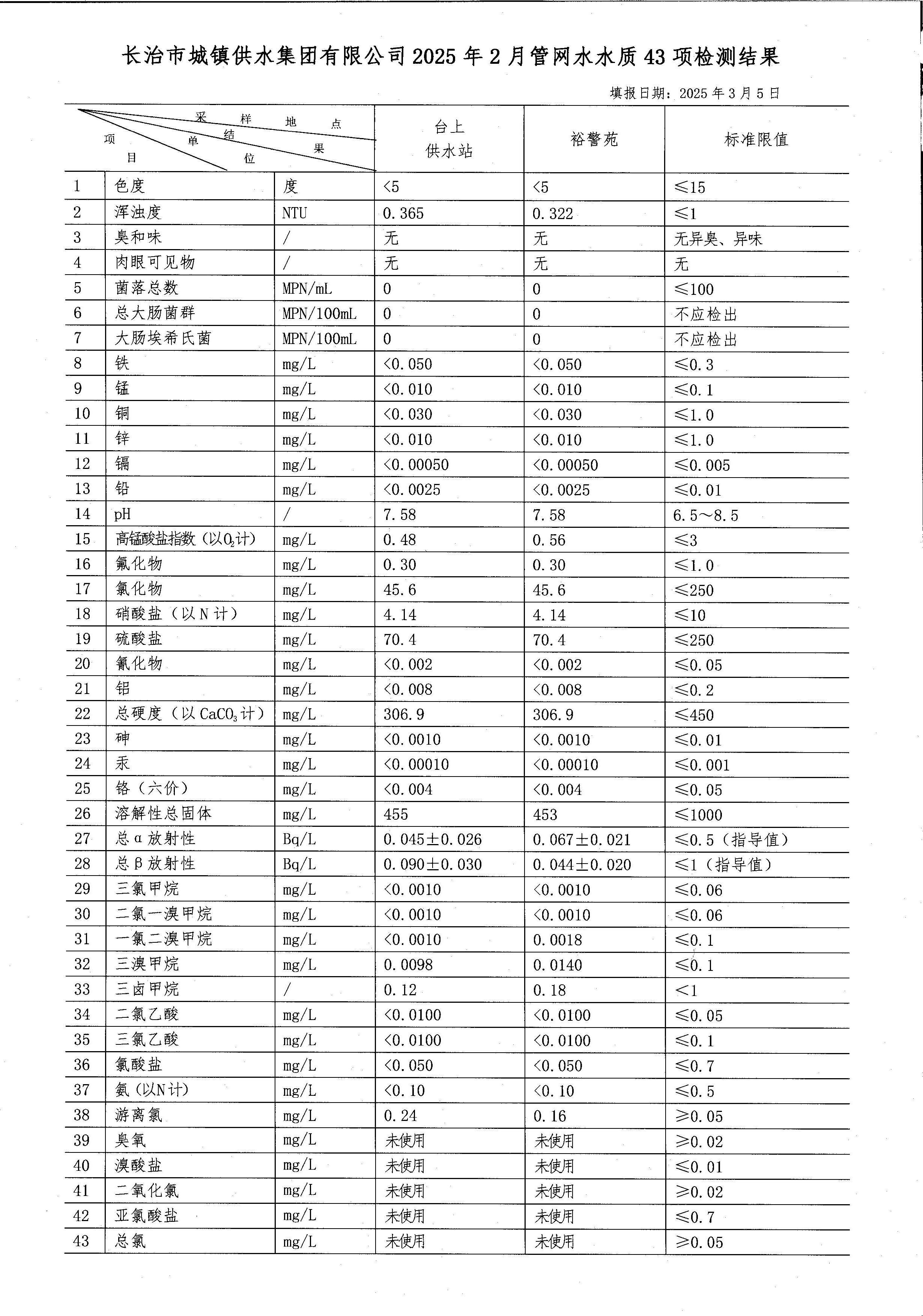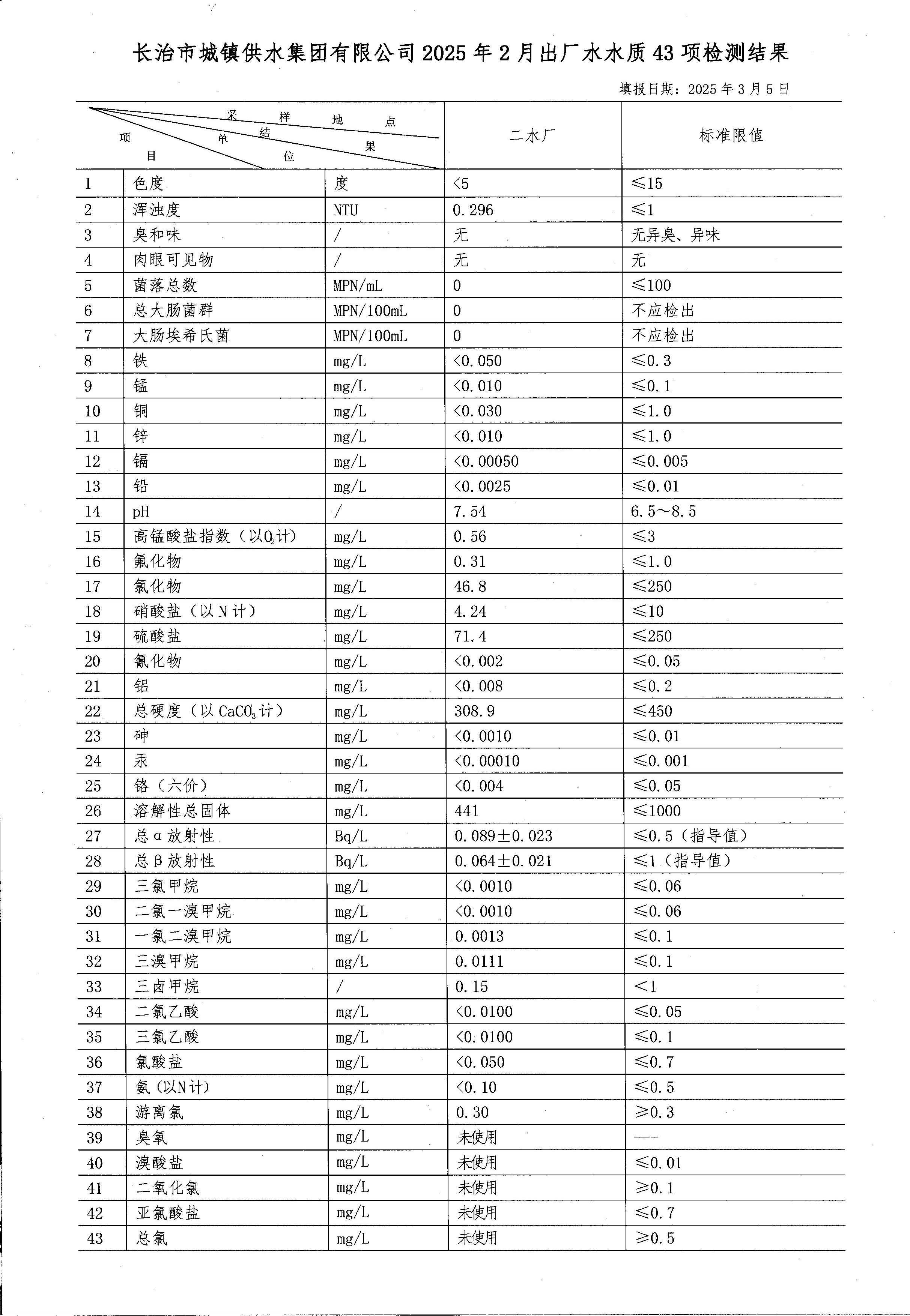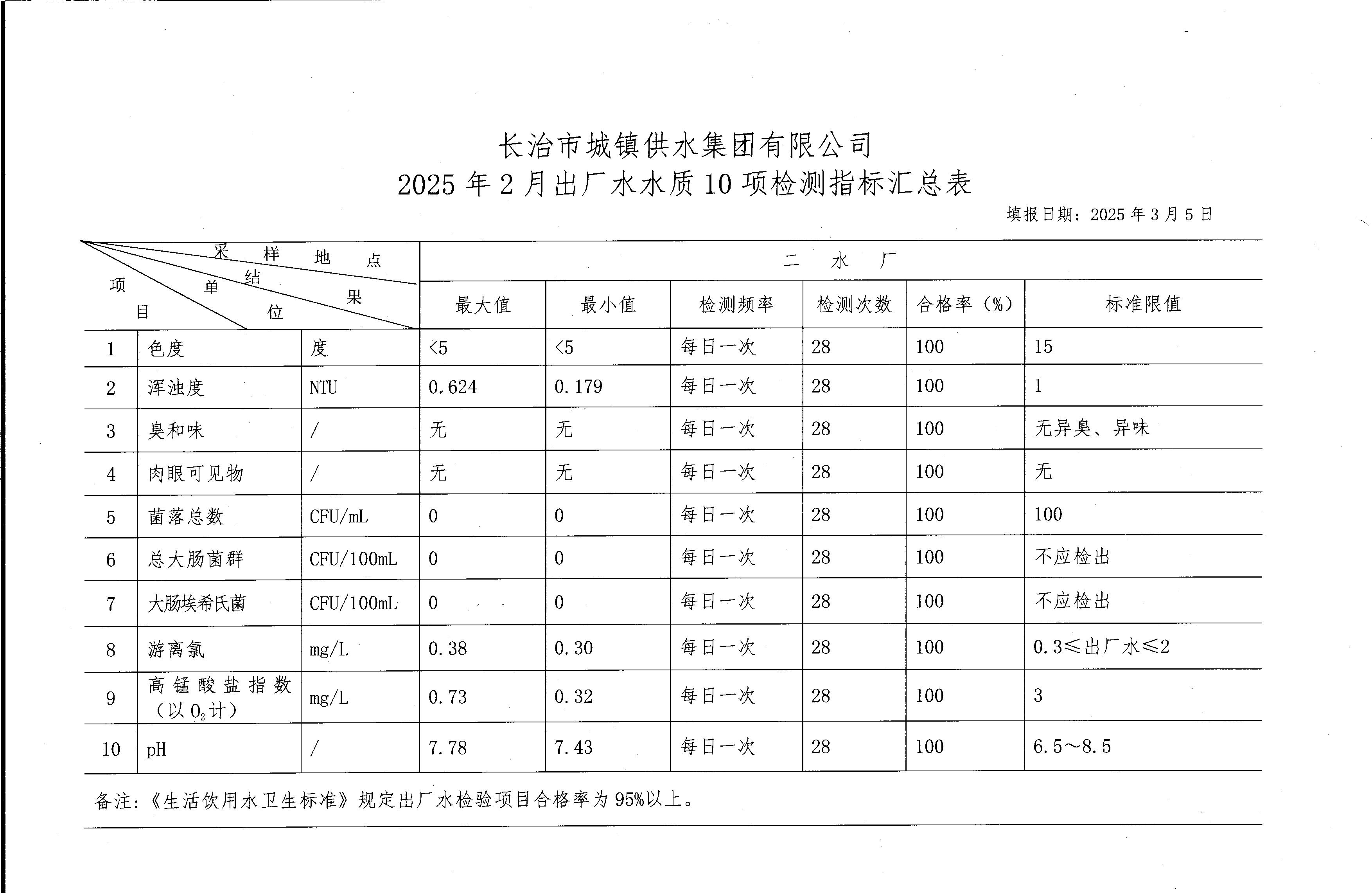 二月水質(zhì)檢測報告