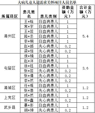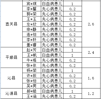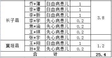 3.大病兒童人道需求關懷項目(25.4萬元)由各縣區申報執行,具體分配情況如下: