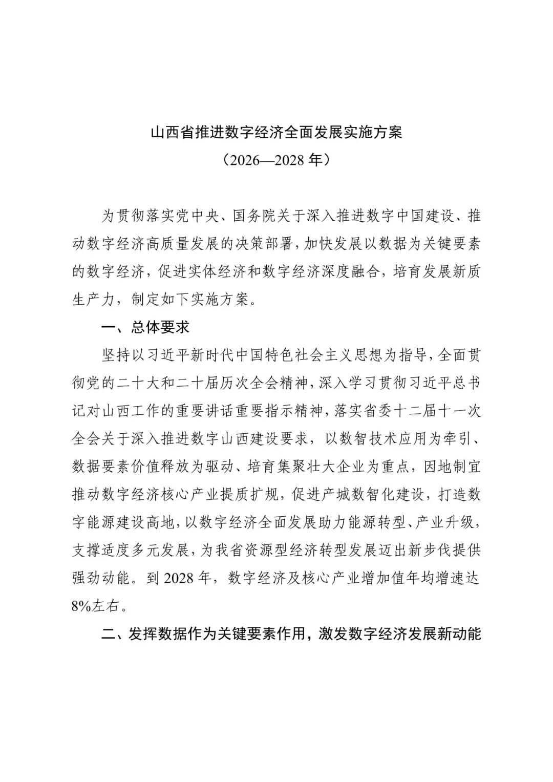 《山西省推進數字經濟全面發(fā)展實施方案(2026—2028年)》已經省人民政府同意,現印發(fā)給你們,請認真貫徹執(zhí)行。