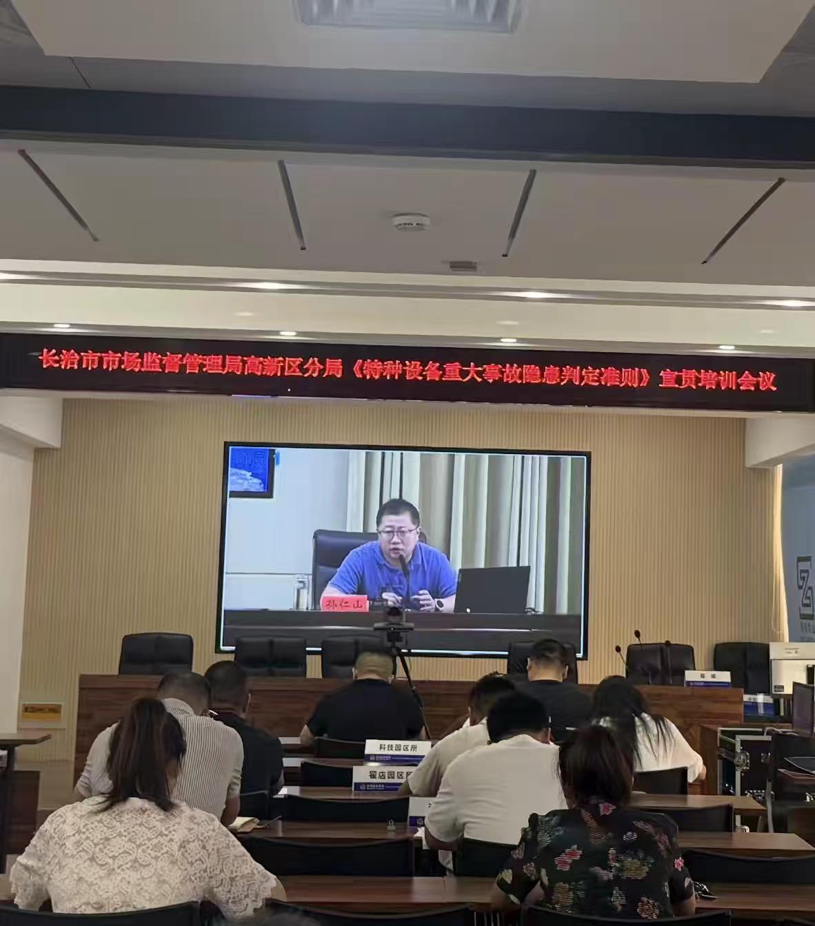 為深入貫徹落實省、市局關于組織開展特種設備重大事故隱患判定準則宣貫培訓工作的部署要求,切實提升轄區特種設備安全監管水平和企業主體責任意識,有效防范化解重大安全風險,8月14日,高新區市場分局組織召開了特種設備重大事故隱患判定準則專題宣貫培訓會議。