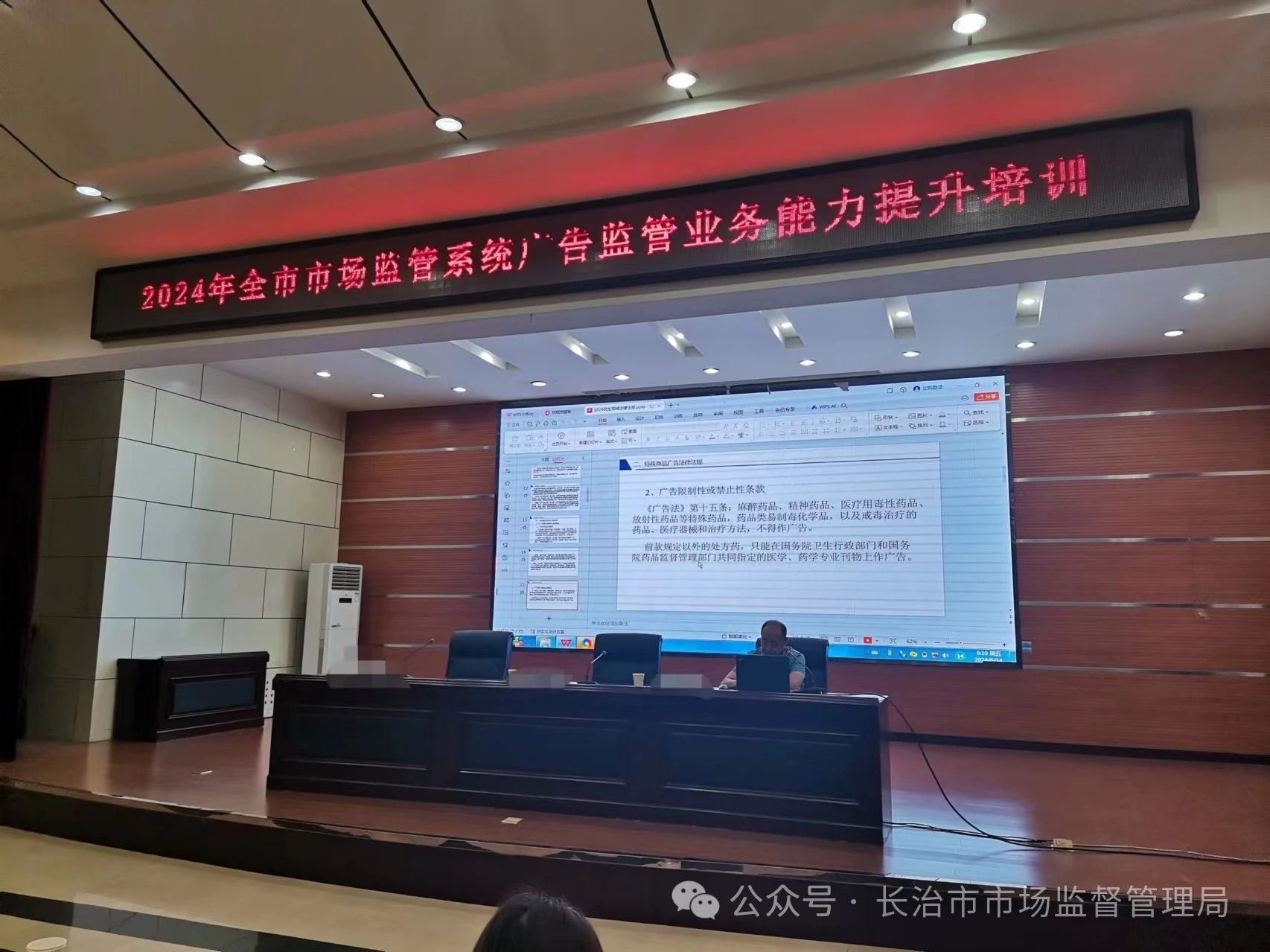 此次培訓邀請省局廣告監管處張宏偉處長進行現場授課,培訓的重點內容是民生領域廣告法律法規以及對廣告監管的理解和認識,培訓課程內容豐富,重點突出,既有豐富的理論知識,又有實戰經驗的典型案例。培訓人員認真聽課,專心致志記筆記,互相學習領會、互動提問題,老師精心解答,此次培訓對廣告監管工作具有很強的針對性和指導性。