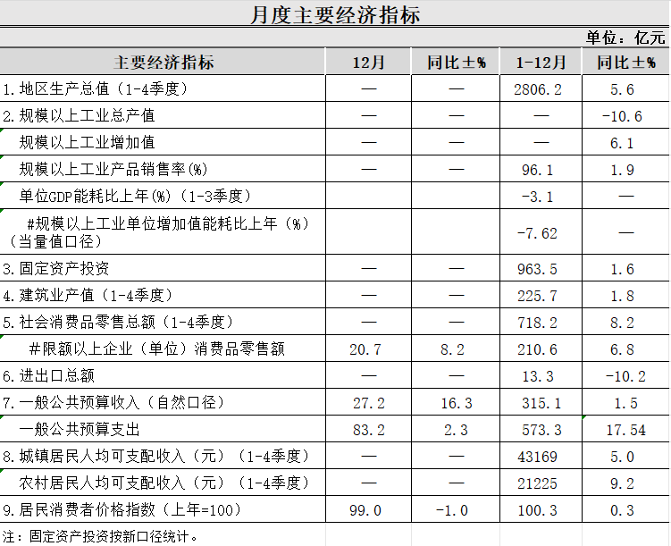 2023年長治市第4季度主要經(jīng)濟指標(biāo)