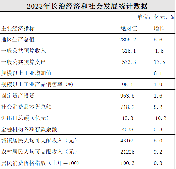 2023年長治經(jīng)濟(jì)和社會發(fā)展統(tǒng)計數(shù)據(jù)