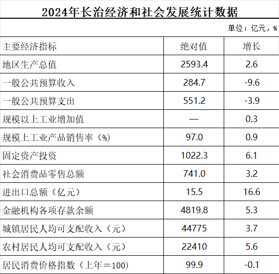 2024年長治經濟和社會發展統計數據