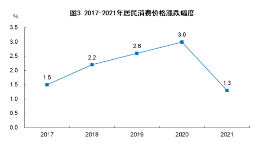 居民消費(fèi)價(jià)格比上年上漲1.3%,其中,食品煙酒價(jià)格上漲1.1%。商品零售價(jià)格上漲3.8%。