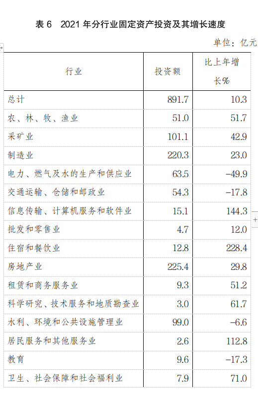 分產(chǎn)業(yè)看,第一產(chǎn)業(yè)投資49.4億元,增長52.3%;第二產(chǎn)業(yè)投資384.1億元,增長2.2%;第三產(chǎn)業(yè)投資458.2億元,增長14.5%。