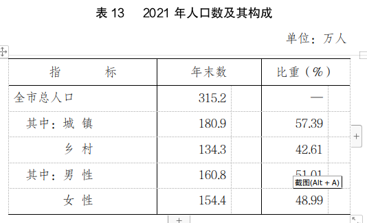 年末全市總?cè)丝跒?15.2萬人,比上年末減少2.8萬人。全年全市出生人口2.3萬人,人口出生率為7.27‰;死亡人口2.7萬人,死亡率為8.39‰;自然增長率為-1.12‰。性別比(女=100)為104.1。