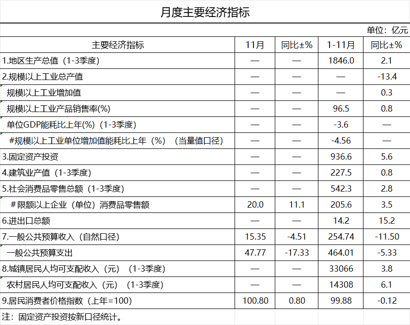 2024年11月長治市主要經(jīng)濟指標(biāo)