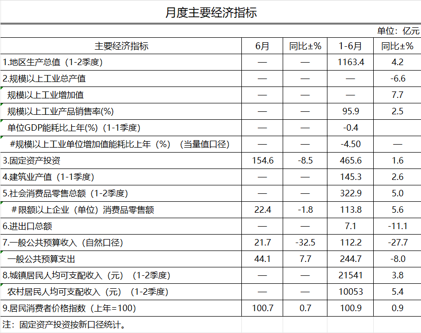 2025年6月長治市主要經濟指標