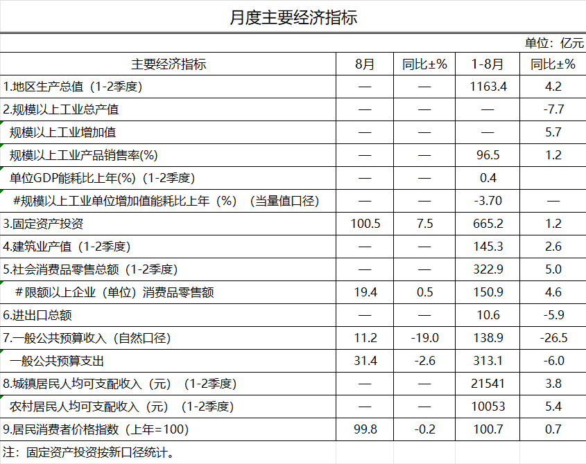 2025年8月長(zhǎng)治市主要經(jīng)濟(jì)指標(biāo)