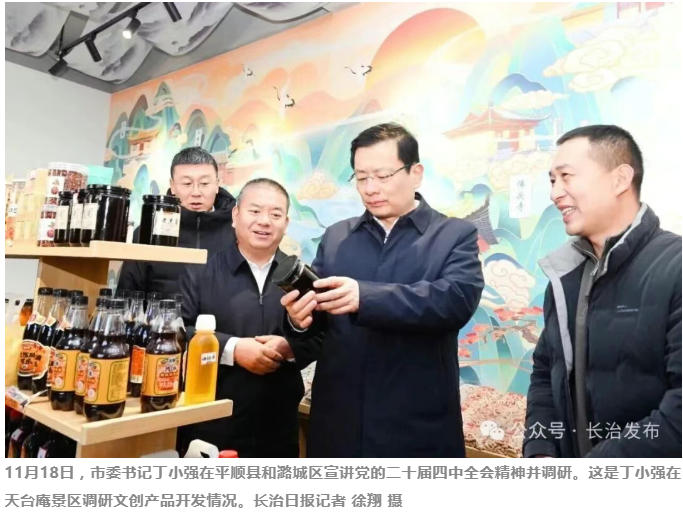 長治日報記者劉曉榮報道 ??11月18日,市委書記丁小強在平順縣、潞城區宣講黨的二十屆四中全會精神并調研。他強調,要深入學習貫徹黨的二十屆四中全會精神,聚焦推動高質量發展這個主題,發揮資源稟賦優勢,培育壯大鄉村特色產業,加強文物保護利用,促進文旅深度融合,奮力推動縣域經濟社會高質量發展再上新臺階。市委常委、秘書長賀鑫參加。