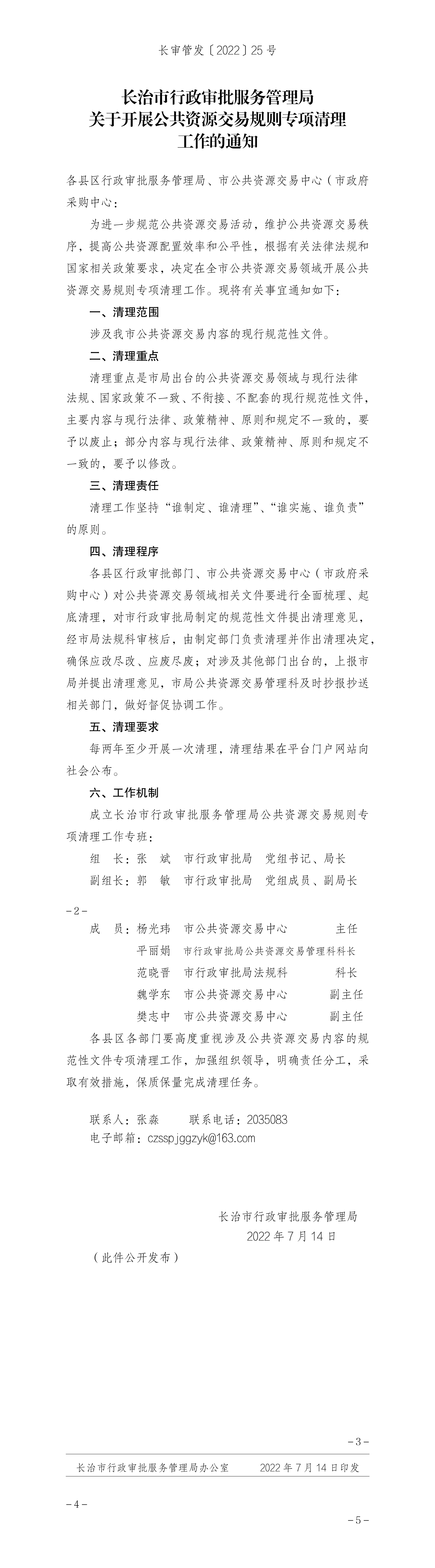 長治市行政審批服務管理局關于開展公共資源交易規則專項清理工作的通知