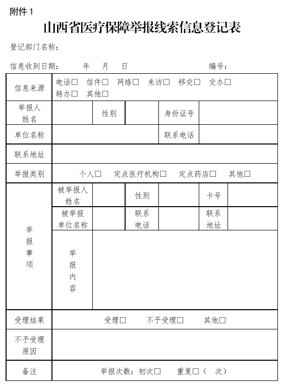 ????附件 1.山西省醫療保障舉報線索信息登記表