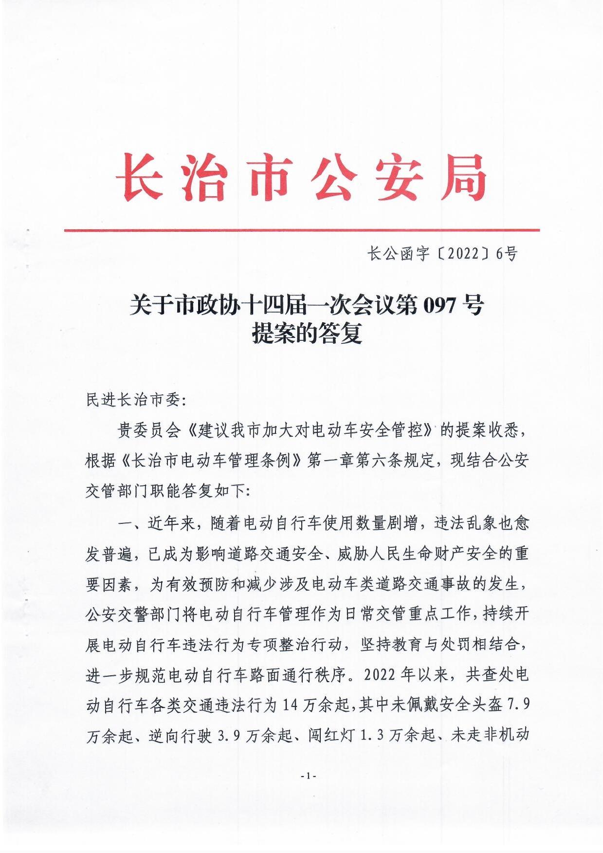 關于市政協十四屆一次會議第097號提案的答復