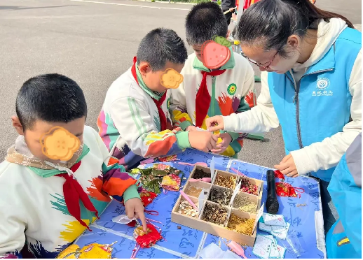 已經集齊4枚印章的孩子們開始制作屬于自己的香囊啦,在“創意香囊”攤位前,選擇自己喜歡的香囊袋和香料進行自由搭配。不一會兒,一個個裝滿桂花、丁香、白芷、紫蘇等香氣的香囊就做好了,孩子們把香囊掛在身上,開心地說:“這可是我自己獨一無二的香囊喔!”
