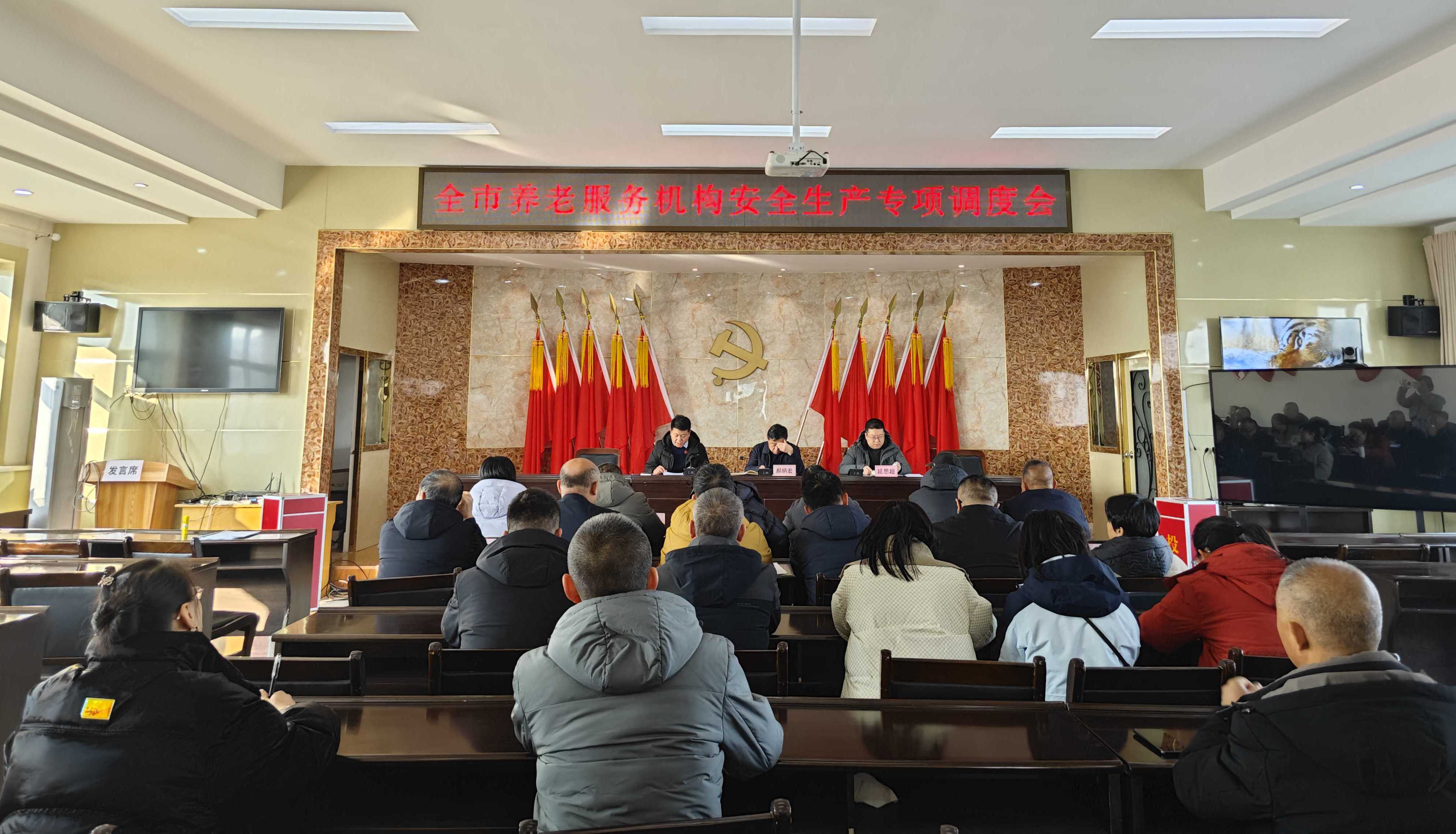 12月30日,我市召開養老服務機構安全生產調度會,分析當前形勢,部署重點任務,堅決筑牢養老服務領域安全底線。會議就近期安全管理情況進行通報,重點涵蓋了消防安全審驗、消防設施操作人員持證、特種作業及食品安全人員持證等情況,要求各縣區針對問題排查整改,同時進一步加強對養老服務機構的安全指導和培訓,提高機構安全管理水平和服務質量。