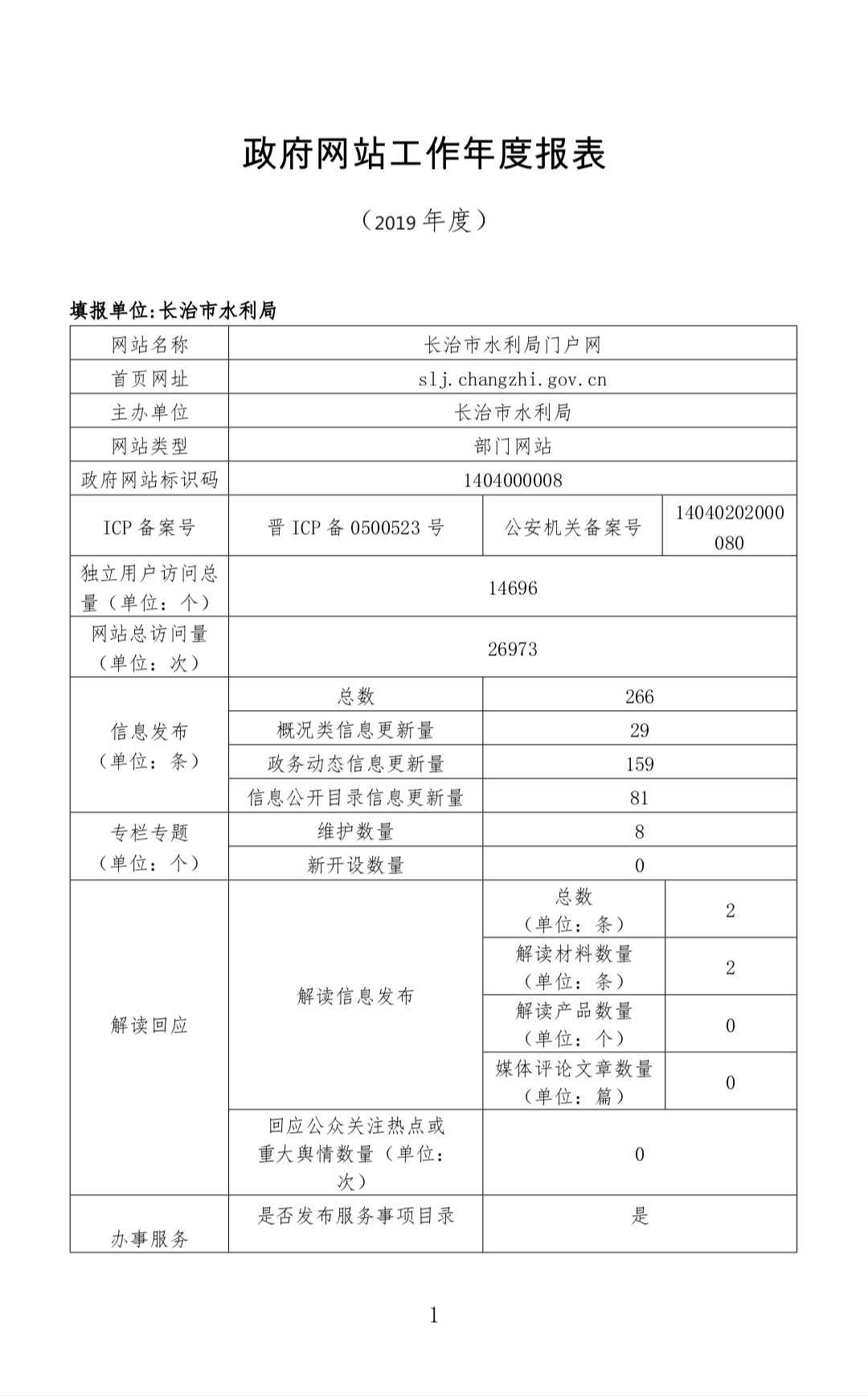 附件:2019年長治市水利局網站年度工作報表