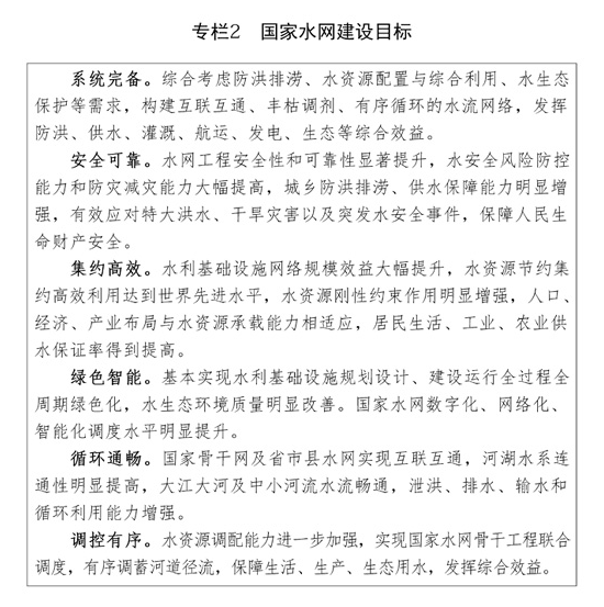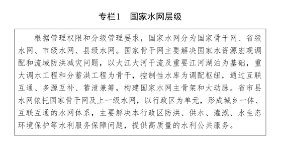 統籌規劃國家骨干網和省市縣水網建設,堅持高標準、高水平,推動水網安全發展、綠色發展、智慧發展、融合發展,健全管理體制機制,全面提升水安全保障能力和水平。