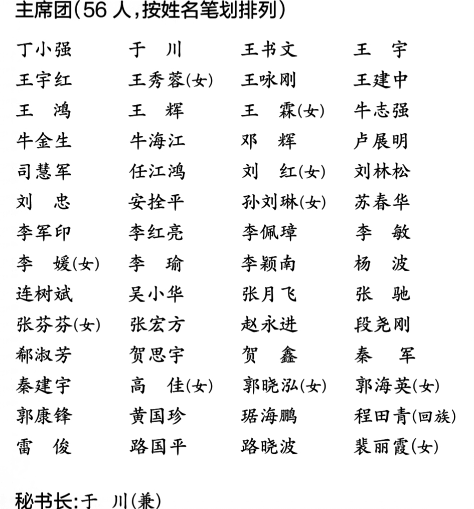 長治市第十五屆人民代表大會(huì)第六次會(huì)議主席團(tuán)和秘書長名單